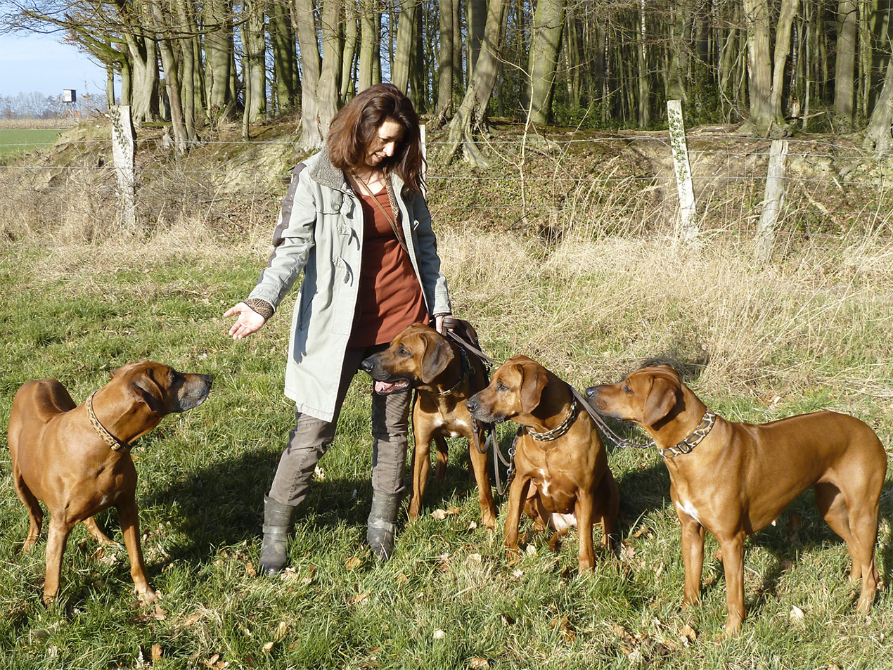 Unsere ersten drei Hunde entstammen dem Zwinger Masvingo von Gudrun und Wilfried Müller in Mardorf am Steinhuder Meer. Die Verbindung zu Müllers ist bis heute nicht abgerissen. Asta war aus ihrem ersten Wurf, Cheetah aus dem dritten und Imara Themba aus deren neunten. Vieles was wir über diese Rasse wissen, haben wir von Gudrun und Wilfried gelernt. Die regelmäßigen Fortbildungen zu unterschiedlichen, für die Hundezucht relevanten Themen sowie Tiertraining-Workshops mit theoretischen und praktischen Komponenten ergänzen unsere inzwischen vielfältigen Erfahrungen in Haltung und Aufzucht kontinuierlich. Eine harmonische und respektvolle Beziehung zwischen Mensch und Hund, sowie ein harmonisches Umfeld für Sie und ihr neues Familienmitglied liegt uns am Herzen. Gerne werden wir daher unseren zukünftigen Welpenkäufern nach dem Einzug ihres Welpen in sein neues Zuhause mit Rat und Tat zur Seite stehen.